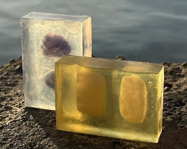 A ritual for hands, body, scents and stones in a soap bar full of organic oils.