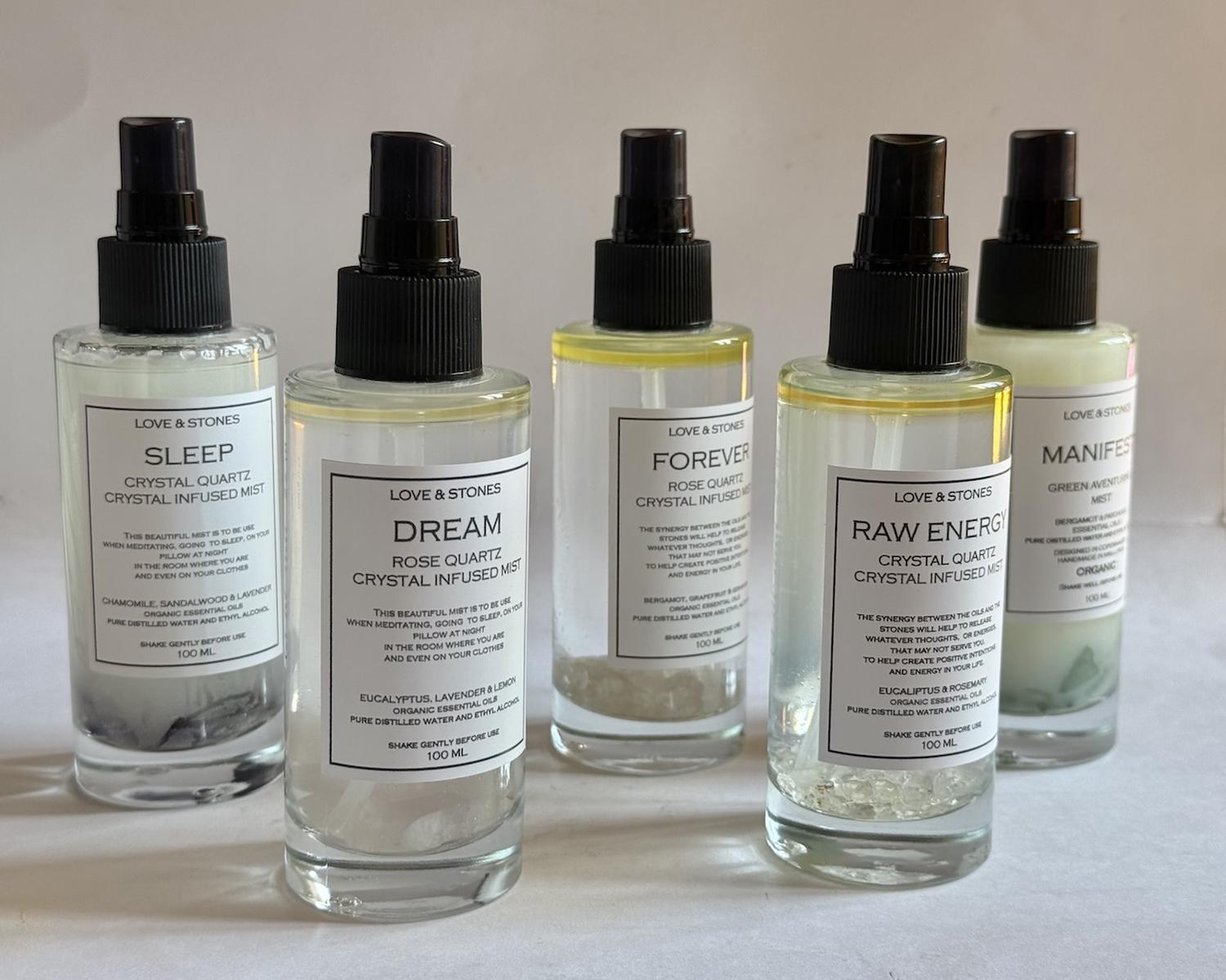 The scented energy room mist infused with crystals to shift the energy around you. The scent moves through the space, creating a feeling of clarity, calm, or focus.
