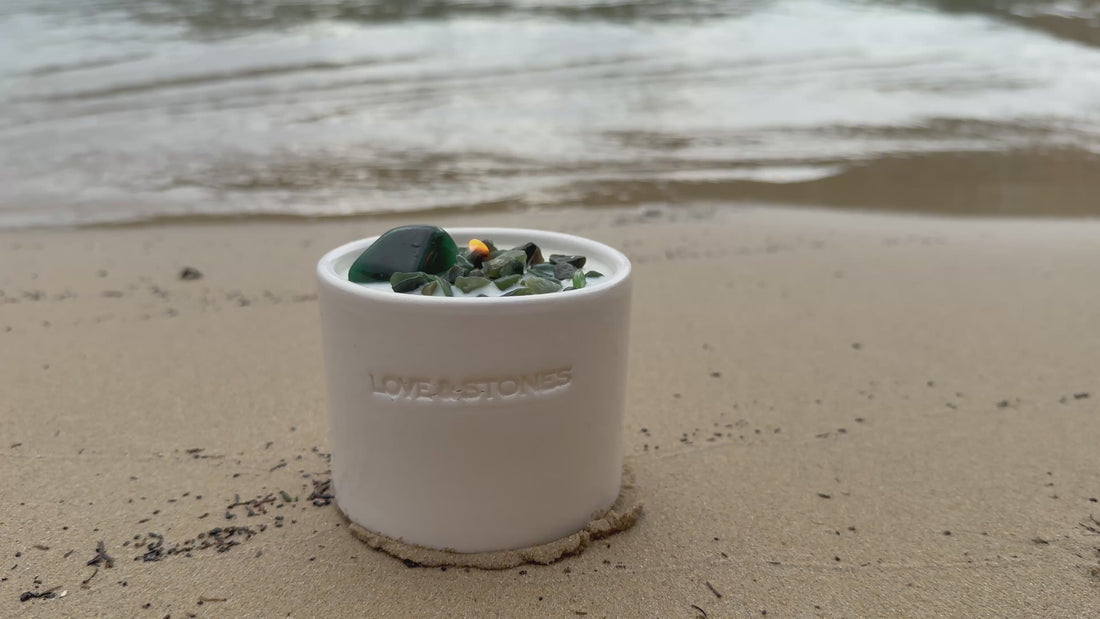 Each candle holds a crystal! You can remove the stone or gently move it once the wax softens so it does not touch the flame... When the candle is finished wash the stone and the ceramic with warm water and keep them forever.