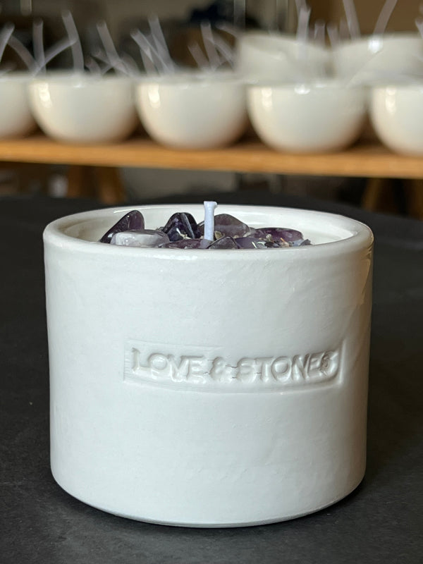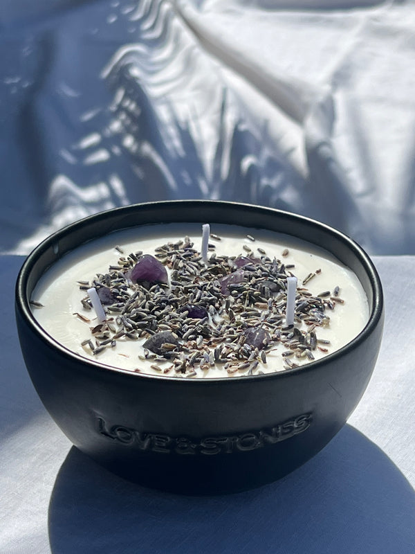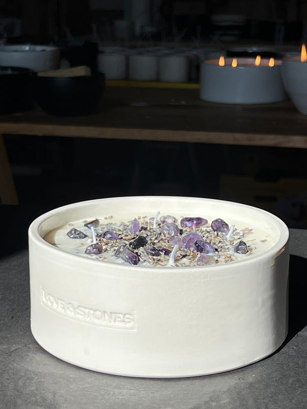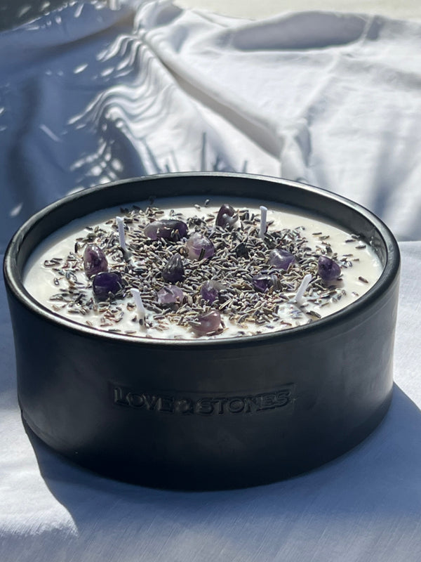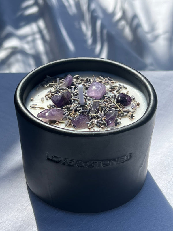 CALMING - AMETHYST & CRYSTAL QUARTZ STONE INFUSED SCENTED BIG CANDLE