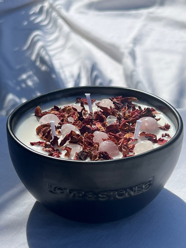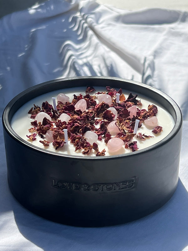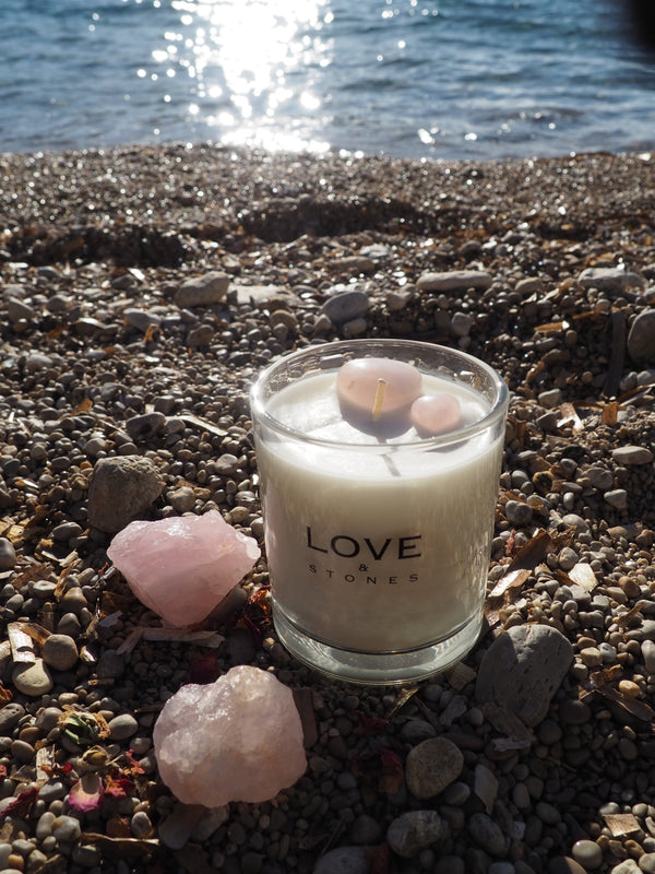 FLOW OF LOVE - ROSE QUARTZ INFUSED SCENTED LARGE CANDLE