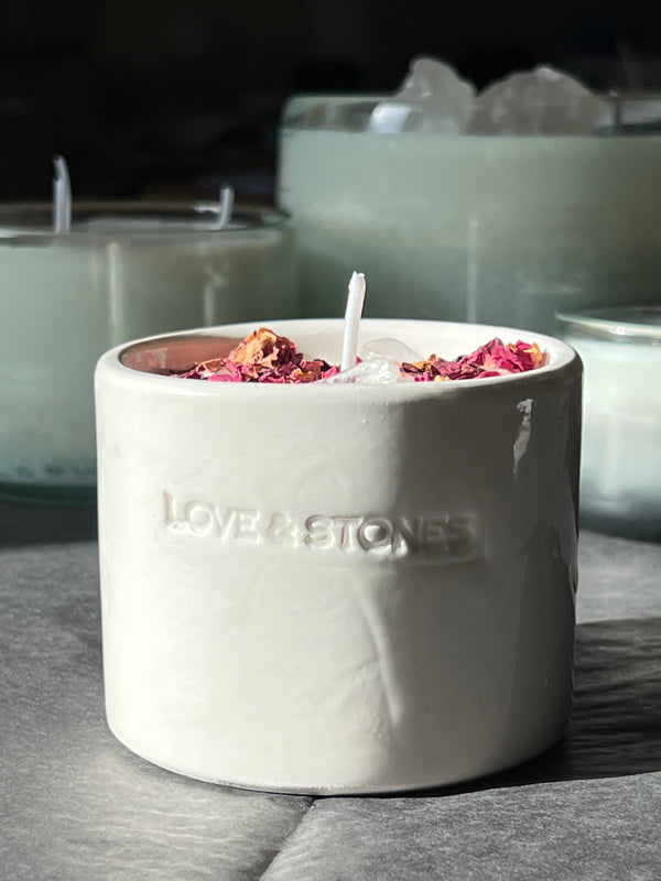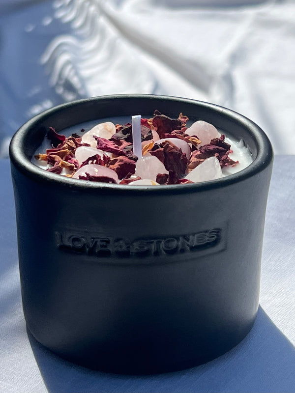 LOVE - ROSES AND ROSE QUARTZ CRYSTALS INFUSED SCENTED PETIT CANDLE