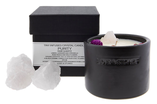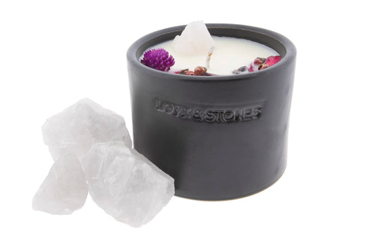 FAITH - A ROSE QUARTZ & CRYSTAL QUARTZ INFUSED SCENTED BLACK BIG CANDLE